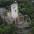 Die Steinfestung steht auf einem Hügel in der vulkanischen Eifelregion, mit einem hohen Bergfried und erhaltenen Befestigungsmauern.
