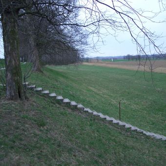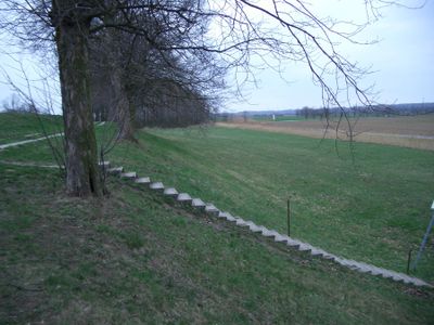 Die Diplomatentreppe verbindet verschiedene Höhen an der Westseite des Oderdeiches zwischen Deichkilometer 6,5 und 6,6, gebaut aus Betonfertigteilen.