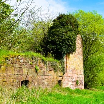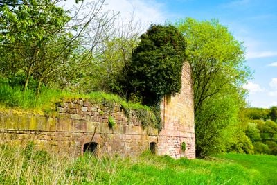Die Überreste von Schloss Monbijou befinden sich auf einem Hügel über Dietrichingen, mit Ruinen einer Orangerie und Gärten von Friedrich Ludwig Sckell.