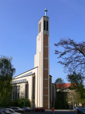Die nach dem schwedischen protestantischen König Gustav II Adolf benannte Kirche repräsentiert durch ihr funktionales Design die architektonische Bewegung der Neuen Sachlichkeit.