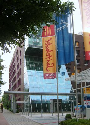 In der Nähe der U-Bahnstation Lohmühlenstraße gelegen, teilt sich das Gebäude eine Tiefgarage mit dem Novotel Suites Hotel.