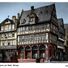 Das Haus zur goldenen Waage steht als dreistöckiges Fachwerkgebäude mit ornamentalen Holzdetails in der Markt 5.