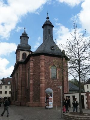 Die Kirche befindet sich am Marienplatz in Aschaffenburg und bietet Zugang zu äußeren Architekturelementen und inneren religiösen Räumen.