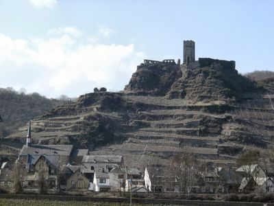 Die Niederburg steht 150 Meter über dem Meeresspiegel auf einem Bergrücken, der sich zum Moselfluss in Rheinland-Pfalz erstreckt.
