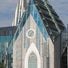 Das Paulinum zeigt eine neugotische Fassade mit Maßwerkfenstern, einer Rosette und beleuchteten achteckigen Säulen, die einen modernen architektonischen Ausdruck schaffen.