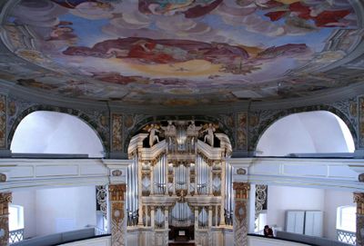 Orgel der Stadtkirche, Barockorgel in der Stadtkirche Waltershausen, Deutschland.