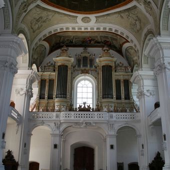 Orgeln der Klosterkirche St. Verena, Barockorgel in der Klosterkirche St. Verena, Rot an der Rot, Deutschland.