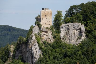 Die steinernen Überreste der Burg Reussenstein erheben sich 760 Meter über dem Meeresspiegel und überblicken das Neidlinger Tal vom Nordrand der Schwäbischen Alb.