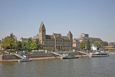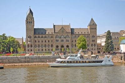 Die Rheinanlagen erstrecken sich über 3,5 Kilometer entlang des linken Rheinufers mit Spazierwegen und Grünflächen.