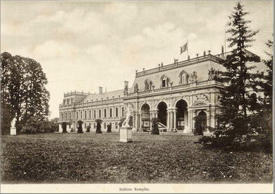 Der Nordflügel von Schloss Remplin zeigt barocke Architekturelemente mit einer großen Arkadenloggia und mehreren Zeremoniensälen in seiner Struktur.