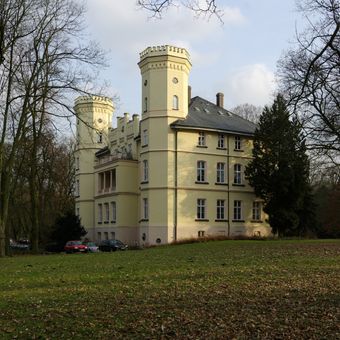 Schloss Schwansbell ist ein Gebäude mit neugotischer Architektur und zwei achteckigen Türmen in Lünen, Nordrhein-Westfalen. Das Bauwerk steht auf dem Gelände einer früheren Flussinsel und beherbergt heute Wohnungen, Büros und ein Museum im angrenzenden Nebengebäude.
