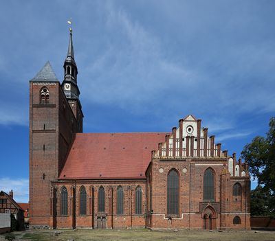 St. Stephans Kirche ist ein backsteinernes Gotteshaus in Brick-Gothic-Architektur, das sich mit seinem hohen Turm deutlich über die Altstadt von Tangermünde erhebt. Das Bauwerk verbindet massive Mauern mit aufwendigen Details in Ziegel, die sowohl von außen als auch im Inneren sichtbar sind.