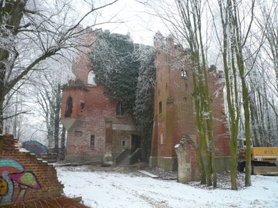 Die Burg wurde 1897 vom Ziegelfabrikanten August Unterholzner erbaut und ersetzte eine ältere Befestigung vom 10. Jahrhundert, die 1554 erstmals in Unterlagen erwähnt wurde. Der Bau stand für den Reichtum der Industrie und den Wunsch der Fabrikanten, sich in mittelalterliche Traditionen einzuordnen.