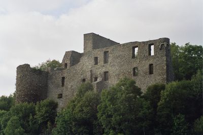 Die Anlage zeigt deutsche mittelalterliche Verteidigungsarchitektur mit ihrem Rundturm, den Grundmauern des Torhauses und dem zweistöckigen Palas aus dem 16. Jahrhundert.