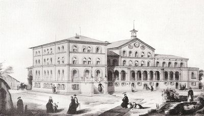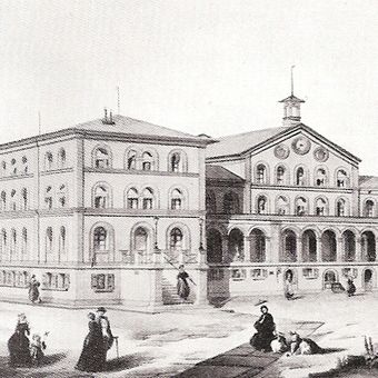Friedrich Bürklein entwarf diesen Bahnhof, der 1848 als Grenze zwischen der bayerischen Ludwig-Süd-Nord-Bahn und der Sächsisch-Bayerischen Eisenbahn eröffnet wurde.
