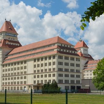 Die Krietschmühle zeigt traditionelle Industriearchitektur mit zwei markanten Gebäuden, die Anfang des zwanzigsten Jahrhunderts von Max Fricke entworfen wurden.