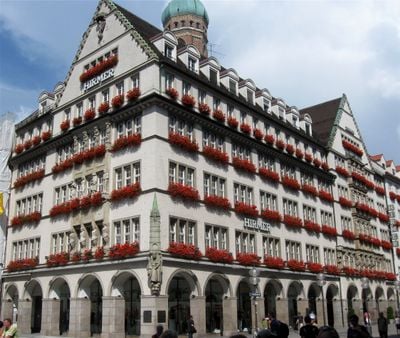 Das Hirmer ist ein monumentales Geschäftshaus im Herzen der Münchner Altstadt, das mit seiner historistischen Fassade und eleganten Details aus dem frühen 20. Jahrhundert besticht. Das Gebäude verbindet aufwendig gestaltete Außenwände mit modernen Einzelhandelsflächen im Inneren.