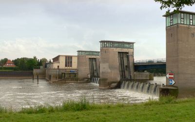 Die Wasserkontrollanlage Drakenburg besteht aus einer Schleuse, einem Wehr mit zwei 40 Meter breiten Abschnitten und einem integrierten Wasserkraftwerk.