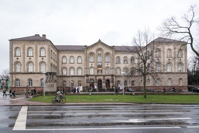 Die Fassade zeigt Statuen und Medaillonporträts bedeutender Gelehrter, darunter Leibniz und Carl Friedrich Gauss, erschaffen von Wilhelm Engelhard und Friedrich Küsthardt.