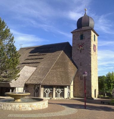 Die Kirche bietet barrierefreien Zugang am Kirchplatz 6 in Schluchsee mit regelmäßigen Gottesdiensten während der Woche.