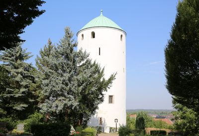 Der Hexenturm ist eine runde Wehranlage aus dem Mittelalter, die sich hinter dem Friedhof der St. Walburga-Kirche erhebt und über fünf Geschosse verfügt. Die Mauern sind beachtlich dick und der Turm wirkt trotz seiner moderaten Größe kompakt und wehrhaft.