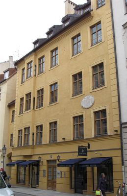 Altmünchner Bürgerhaus, Wohn- und Sterbehaus von François de Cuvilliés der Ältere; im Kern spätgotisch, um 1615 Aufstockung und Dachstuhl, Fassadengestaltung barock, wohl 1. Hälfte 18. Jahrhundert; nördlich anschließend der die Ledererstraße überbrückende, von Hau