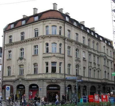 Wohn- und Geschäftshaus Falkeneck, Denkmalgeschütztes Haus in München, Deutschland