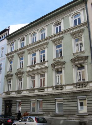 Mietshaus, Neurenaissance, reich gegliedert und dekoriert, 1884 von Heinrich Hilgert.