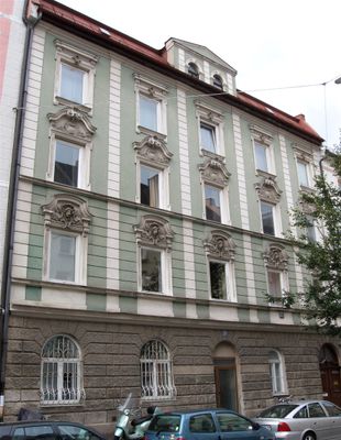 Mietshaus, Neubarock, reich gegliedert und stuckiert, um 1890/1900.