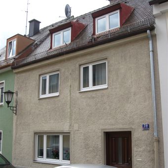 Zweigeschossiges Wohnhaus, zweigeschossiger verputzter Massivbau mit Satteldach, im Kern um 1840/45, Umbauten von 1934 und 1965.
