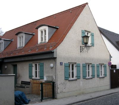 Erdgeschossiges Satteldachhaus, erdgeschossiger verputzter Massivbau mit Satteldach, um 1840/45.