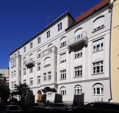 Mietshaus, malerischer, später Jugendstil-Eckbau, um 1910; Gruppe mit Ungererstraße 40.