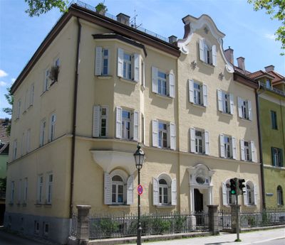 Mietshaus, Neubarock, mit Erker und Schweifgiebel, um 1900, Fassadenpreis der Landeshauptstadt München 2005; Block mit Nr. 6.