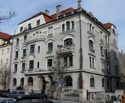 Mietshaus, barockisierender Jugendstil, reich gegliedert und stuckiert, 1904 von Max Langheinrich.