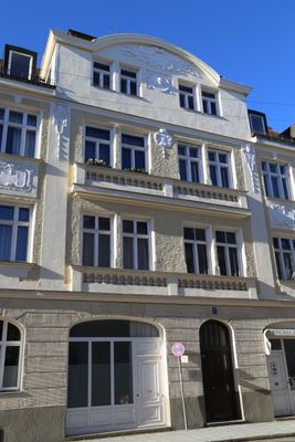Mietshaus, barockisierender Jugendstil, mit erhöhtem Mittelteil und Stuckdekor, bez. 1901.