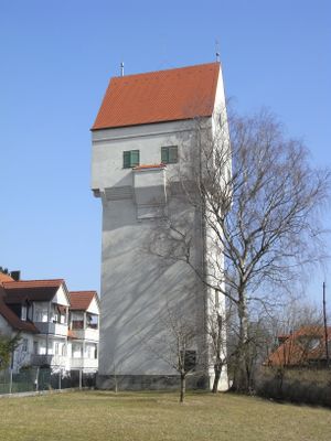 Wasserturm von Moosburg, Turm in Moosburg an der Isar in Oberbayern. Ehem. Wasserturm, in der Art eines mittelalterlichen Stadtturms, nach Plänen von Architekt Otto Leitolf, 1909. Heute vom DAV als Kletterturm genutzt.