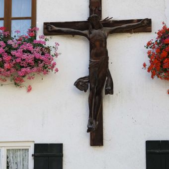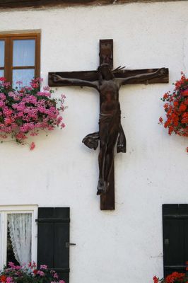 Kruzifix, nahezu lebensgroßes hölzernes Kruzifix in spätgotischen Formen, um 1500