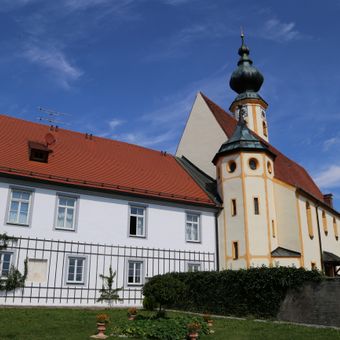 Ehem. Pfarrhof, zweigeschossiger Satteldachbau, 1731-32 erbaut, 1922 nach Westen verlängert.