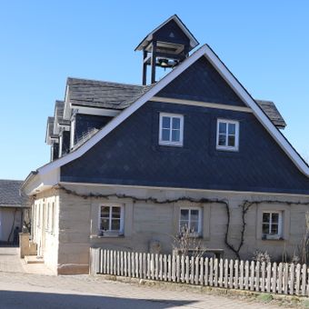 Wohnstallhaus, Erdgeschoss inklusive Stallteil aus Sandsteinquadern, Satteldach und Giebel verschiefert, erste Hälfte 19. Jahrhundert