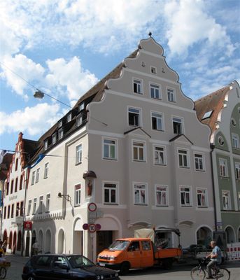 Koboldbräu, fassade des ehemaligen Koboldbräus, Treppengiebel mit aufgeputztem Kielbogenfries, spätgotisch, um 1500.