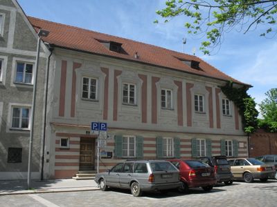 Colloquium marianum externum, ehemaliges ''Colloquium marianum externum'', zweigeschossiger Traufseitbau mit abgewalmtem Dach und Hauskapelle im Obergeschoss, 1754 neu erbaut, Putzgliederung der Fassade 1977 rekonstruiert; ehemaliges Kanonistenhäuschen, westlich angeschlossenes