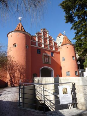 Ehemaliges Torhaus, sogenanntes Oberes Tor, zweigeschossiger giebelständiges Stadttor mit zwei flankierenden Rundtürmen mit Zeltdach, 1541.