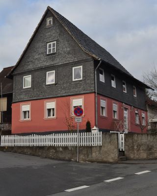Satteldachhaus, zweigeschossig in Ecklage, verschiefertes Fachwerkobergeschoss, 18. Jahrhundert