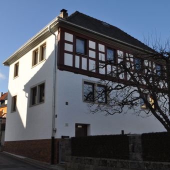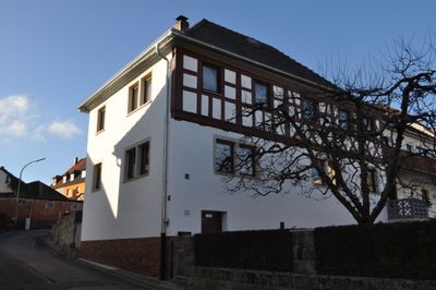 Walmdachbau, zweigeschossig, Fachwerkobergeschoss, spätes 18. Jahrhundert