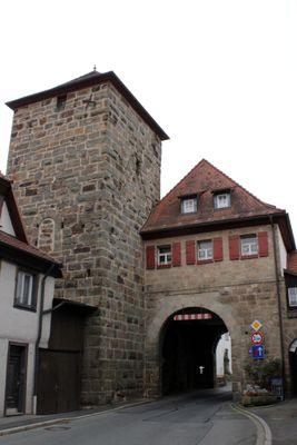 Oberer Torturm, viergeschossiger quadratischer Sandsteinquaderbau mit Zeltdach, 14./15. Jahrhundert