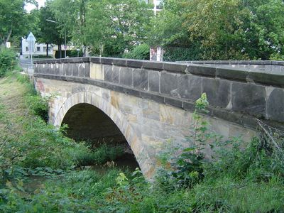 Brücke, einbogige Sandsteinbrücke über den Mistelbach, um 1875
