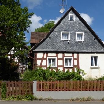 Wohnstallhaus, eingeschossiger Giebelbau mit Zwerchgiebel, bezeichnet „1832“, zweigeschossiges Austragshaus mit Riegelfachwerk, Frackdach, wohl zweite Hälfte 18. Jahrhundert