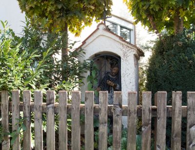 Bildstock, mit Holzfigur des heiligen Johann Nepomuk, Mitte 18. Jahrhundert.
