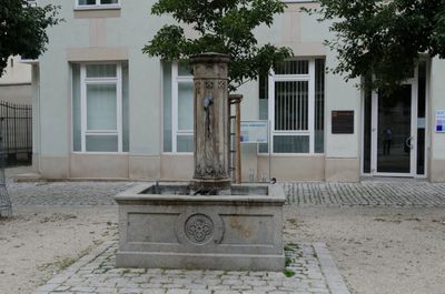 Brunnen, mit Trog und Stele, neugotisch, um 1870