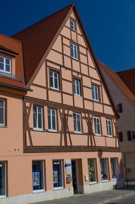 Im Obergeschoss freigelegtes Fachwerk, spätes 15. Jahrhundert; ''nicht nachqualifiziert''